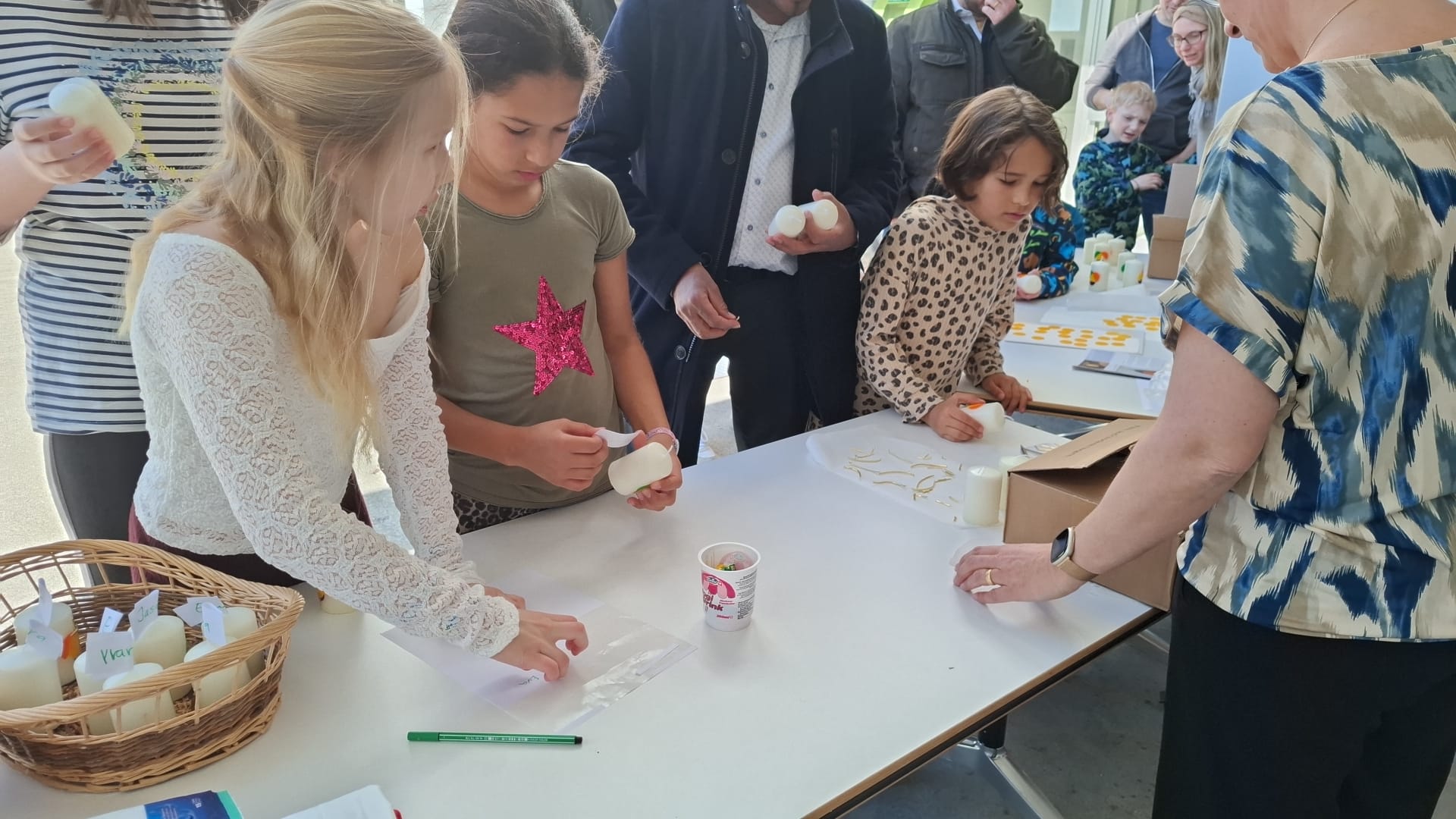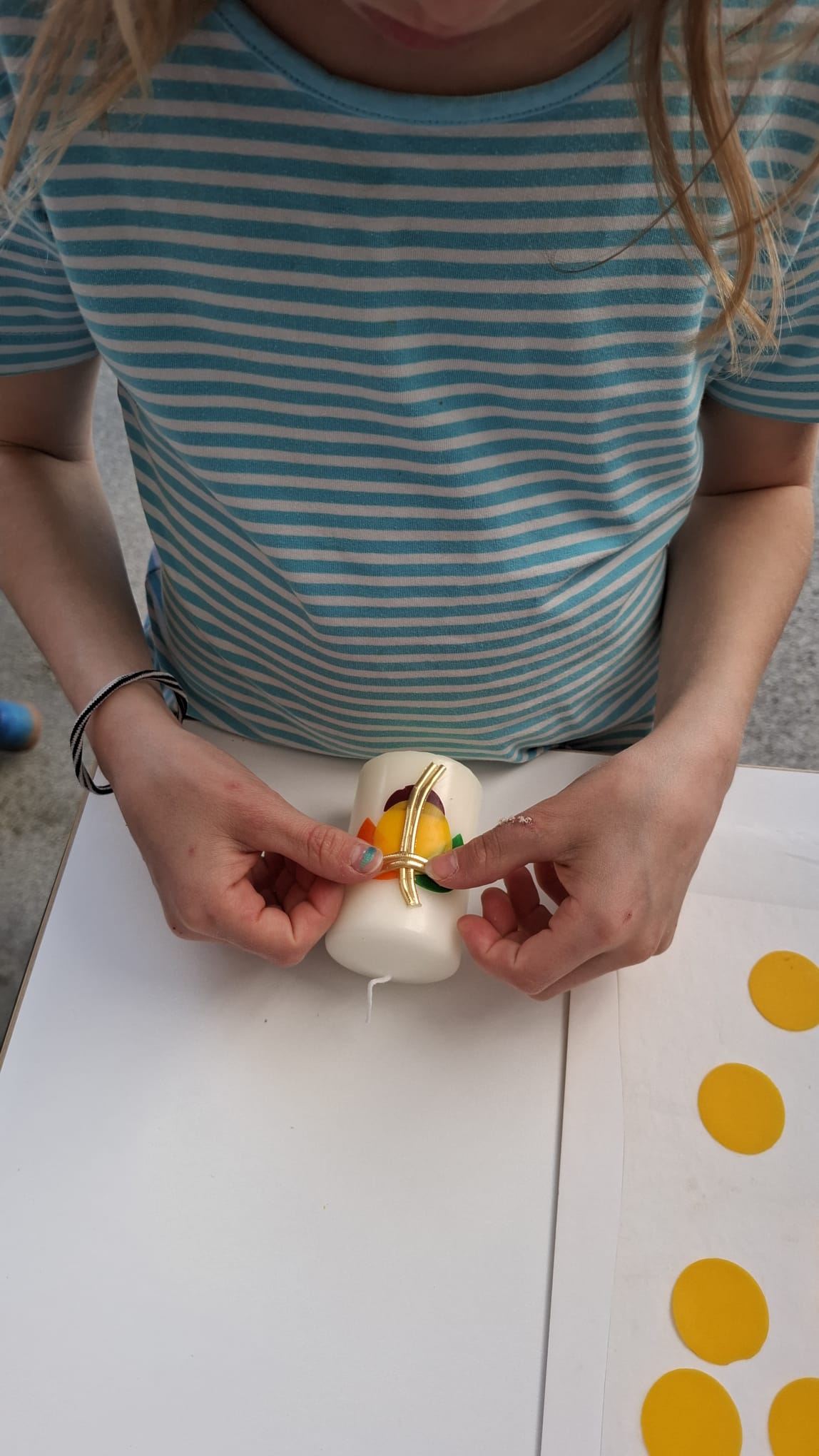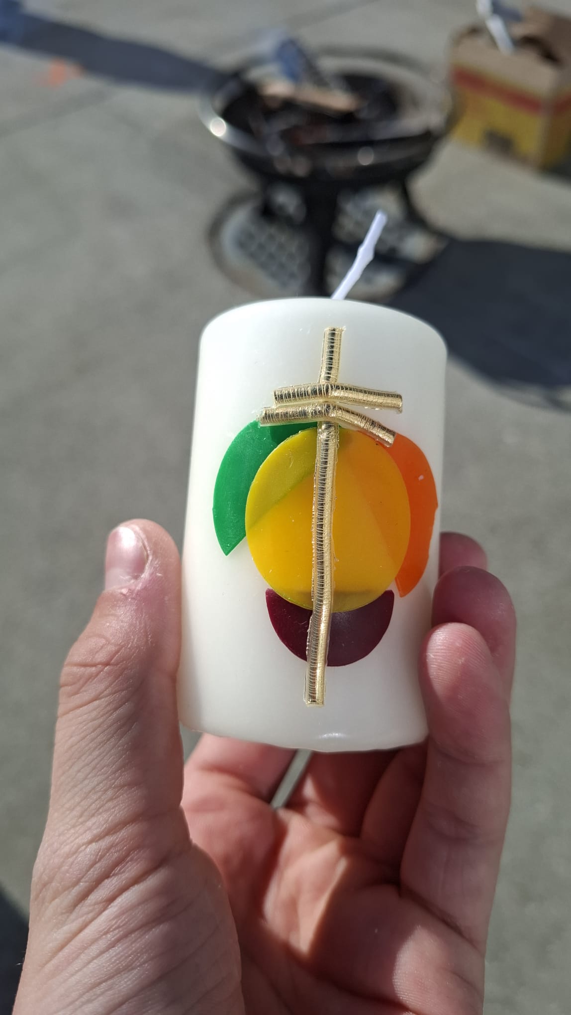 Zu Beginn durften die Kinder ihre eigenen Osterkerzen fertig verzieren. Diese selbst gestalteten Kerzen wurden am Ende gesegnet.