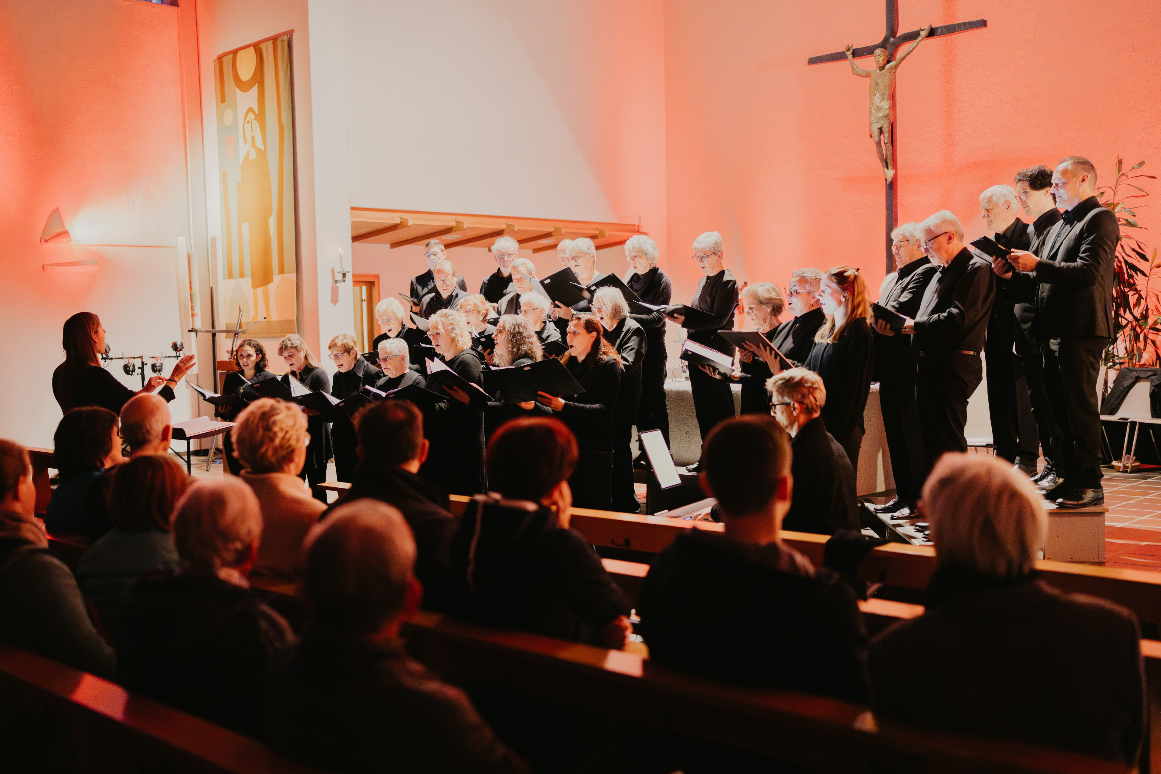 Jeden Montagabend tauchen wir Sängerinnen und Sänger ein in die Welt der chorischen Stimmen: Sopran, Alt, Tenor und Bass. Unter der Leitung von Valérie Halter bringen wir geistliche und weltliche Chormusik aus allen Stilrichtungen zur Aufführung und pflegen das gemeinschaftliche Wohlbefinden.