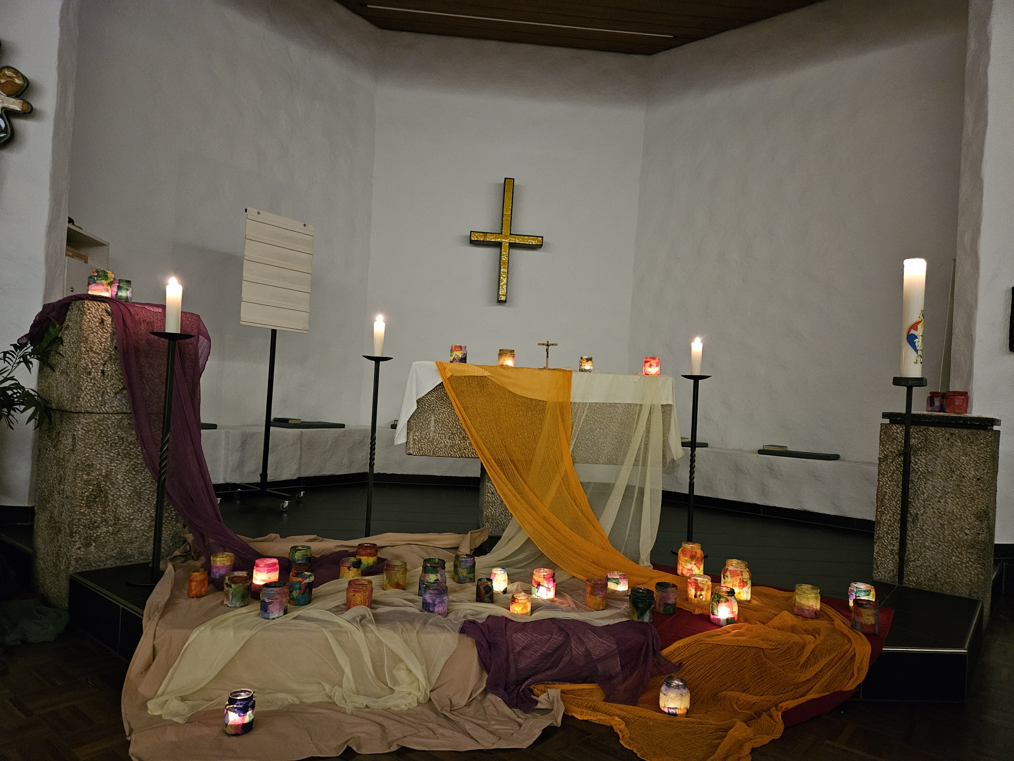 Jeden zweiten Mittwoch im Monat treffen wir uns und üben mehrstimmige Gesänge, mehrheitlich Taizélieder. Ab 20.00 Uhr zünden wir Kerzen an und singen die Lieder im Rahmen einer kleinen, meditativen Feier. Alle sind zum Mitsingen eingeladen. Es ist eine regelmässige oder gelegentliche Teilnahme möglich.